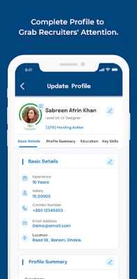 In the “Update Profile” screen, add your personal information, your job experiences, skills, educational information, your projects etc.