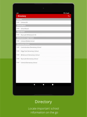 The official Colonial School District - PA app gives you a personalized window into what is happening at the district and schools. Get the news and information that you care about and get involved. Anyone Can: -View District and school news -Use the district tip line -Receive notifications from the district and schools -Access the district directory -Display information personalized to your interests