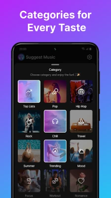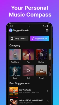 Suggest Music allows you to explore the world of music. It helps you choose from thousands of artists and millions of songs, offering easy access to both popular and undiscovered music to expand your music taste. Push the boundaries of the music world by experiencing a different music every day.