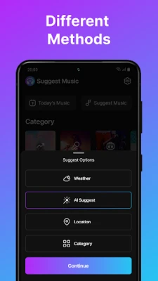 Suggest Music is a specially designed application for music enthusiasts. The app employs unique methods to offer a different music experience every day. Experience the excitement of discovering a new song every day with daily music recommendations. Additionally, enjoy the atmosphere with music recommended based on the weather and your location. Find the most suitable music with artificial intelligence by selecting a category or typing the music you want.